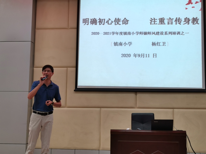 為進一步貫徹黨的教育方針,推進師德師風建設活動的深入開展,9月11日,鎮南小學楊紅衛校長在報告廳召開了以“強師德,正師風,鑄師魂”為主題的師德師風專題培訓會,全體教師參加了此次會議。