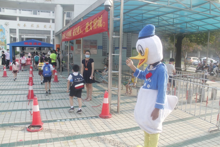 開學典禮最后,全體師生進行呼號。“煥彩童年,趣味一生”“精進充實,向美而生”的口號頓時響徹鎮南小學的田徑場。師生們的臉上洋溢著對新學期新生活的熱切期待與向往,也做好了應對新挑戰新變化的充分準備。