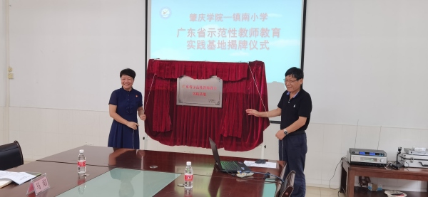 七月流火,載譽輝煌,院校合作,共建共贏。7月8日,肇慶學院教師教育學院黨委書記張占亮教授和鎮(zhèn)南小學張洪娣校長共同為“廣東省示范性教師教育實踐基地”揭牌。鎮(zhèn)教育事務指導中心、鎮(zhèn)南小學全體行政及教師代表參加。