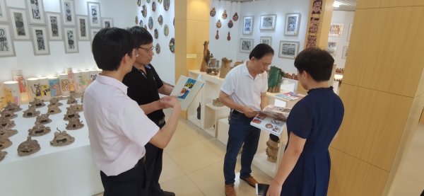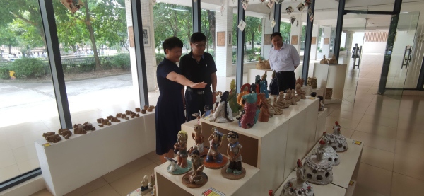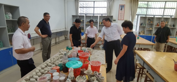 會前,鎮(zhèn)南小學張洪娣校長帶領來賓參觀校園,介紹學校藝術特色建設及發(fā)展規(guī)劃,肇慶學院的專家學者對學校藝術特色教育成果贊嘆不已。