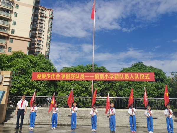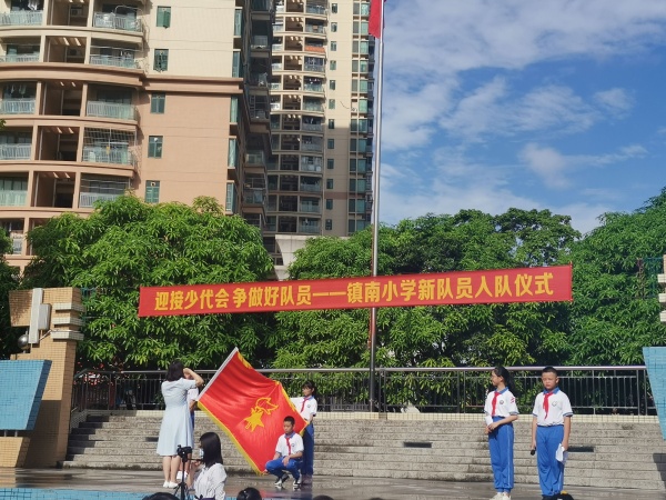 晴日暖風(fēng)生麥氣,綠陰幽草勝花時(shí)。6月3日,鎮(zhèn)南小學(xué)在操場(chǎng)上舉行了新隊(duì)員入隊(duì)儀式。一年級(jí)共有112名新隊(duì)員在鮮紅的隊(duì)旗的見證下,光榮地加入了中國(guó)少年先鋒隊(duì)組織。
