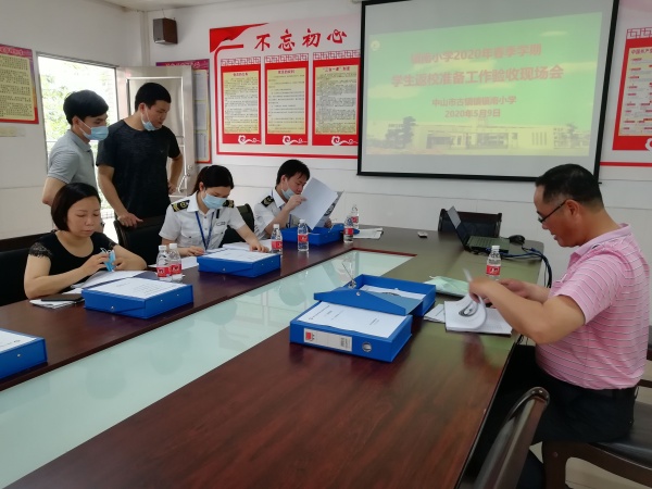 首先,督導組對學校的組織管理、校園環境設施、物資保障、應急處置準備、教育培訓等進行了全面和細致的實地考察。他們一邊考察,一邊交流,時不時為學生返校準備工作精準指導。隨后,督導組對照《中山市中小學校幼兒園學生返校準備工作驗收表》,將驗收表中的62項任務內容的資料一一查閱。督導組時而詢問,時而交流,對驗收工作進行全面檢查,很好地促進了督導驗收的真正目的 ——“守護師生健康,構建和諧校園”。檢查結束后,鎮南小學張洪娣校長詳細地闡述了學校防控工作情況及學生返校準備的工作,并得到了督導組全體成員的一致認可。督導組成員一致認為鎮南小學在防控與返校準備工作中能充分體現精細化管理。人員分工明確,高度重視、責任明確、工作認真負責,能充分地準備學生返校復學前工作,已具備學生返校復學的條件。