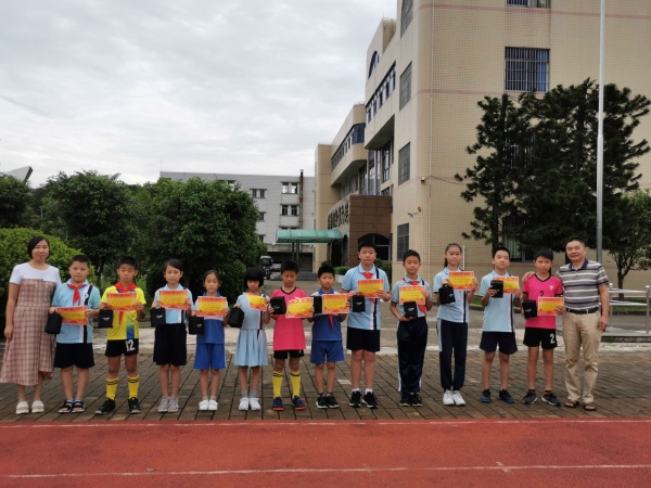 6月9號上午,港園小學(xué)舉行了“校園足球游戲設(shè)計比賽”頒獎儀式,三年級孫語彤、四年級陳欣怡、五年級林逸山、六年級蔣萬祺等12位同學(xué)上臺領(lǐng)獎,港園小學(xué)劉奧鵬校長和課題組組長劉倩華老師給同學(xué)們頒獎,并給予他們鼓勵和表揚。