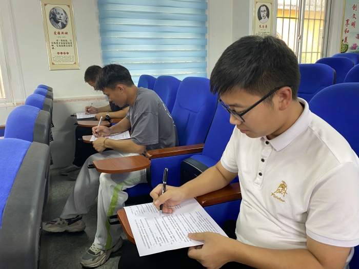 接著,汪芳組織了教師“五項管理”閉卷答題活動。老師們經過30分鐘的答題時間,交上了滿意的答卷。