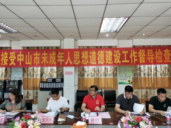 未成年人是祖國未來的建設者,是中國特色社會主義事業的接班人。為進一步推進學校未成年人思想道德建設工作,加強文明校園創建,充分發揮學校在加強未成年人思想道德建設方面的重要作用,7月7日上午,中山市未成年人思想道德建設工作督導組一行蒞臨華文學校進行督導檢查。本次檢查小組由東升鎮同樂小學曾江副校長帶隊;橫欄鎮教育事務指導中心非常重視這次檢查,市督學、鎮教育事務指導中心副主任吳卓芬、鎮教育事務指導中心德育專干冼偉勛也參與了本次檢查。