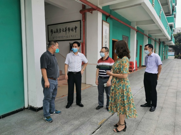 為保障廣大教職工、學生的生命安全和身體健康,強化新冠肺炎疫情防控和應急處置工作,保障返校復學工作順利開展,5月13日上午,橫欄鎮黨委委員、武裝部部長林達光蒞臨華文學校進行疫情預防工作和復學準備工作調研。鎮衛生監督所潘理理所長,市督學、鎮教育事務指導中心吳卓芬副主任及吳炳炎專干協同檢查,華文學校謝春生校長、葉冬生主任陪同。