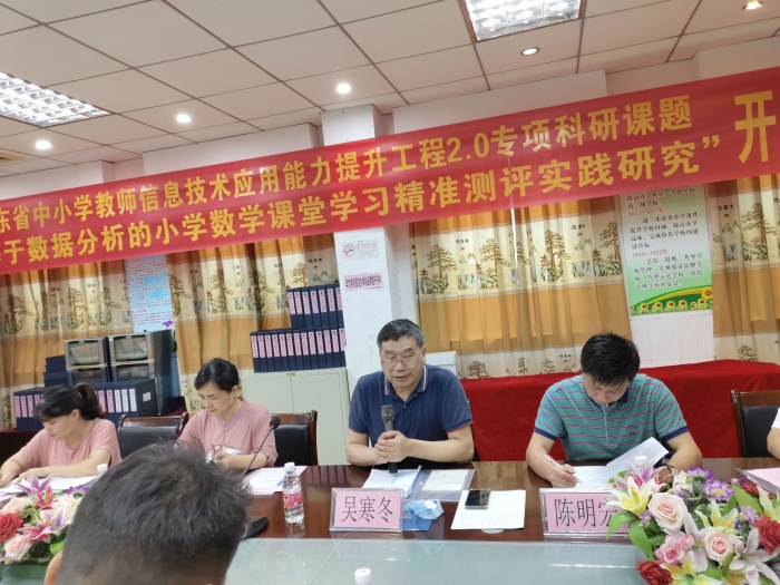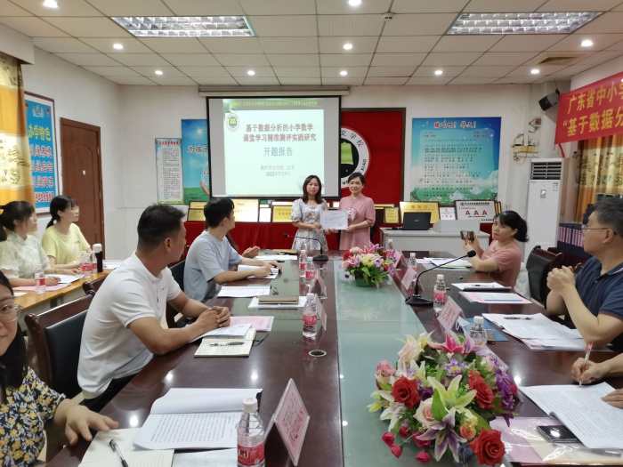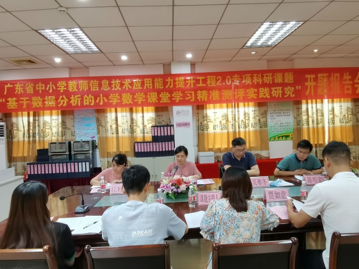 7月1日下午,橫欄華文學校申報的廣東省中小學教師信息技術應用能力提升工程2.0專項科研課題——《基于數據分析的小學數學課堂學習精準測評實踐研究》開題了。出席本次開題會的嘉賓、領導有中山市能力提升工程2.0辦公室主任吳寒冬、副主任陳明宏、中山市小學數學教研員劉燕、橫欄鎮教育和體育事務中心教研專干王春明、華文學校校長賈如意,課題組全體成員參會。