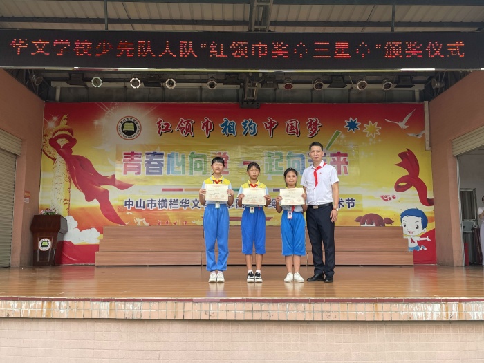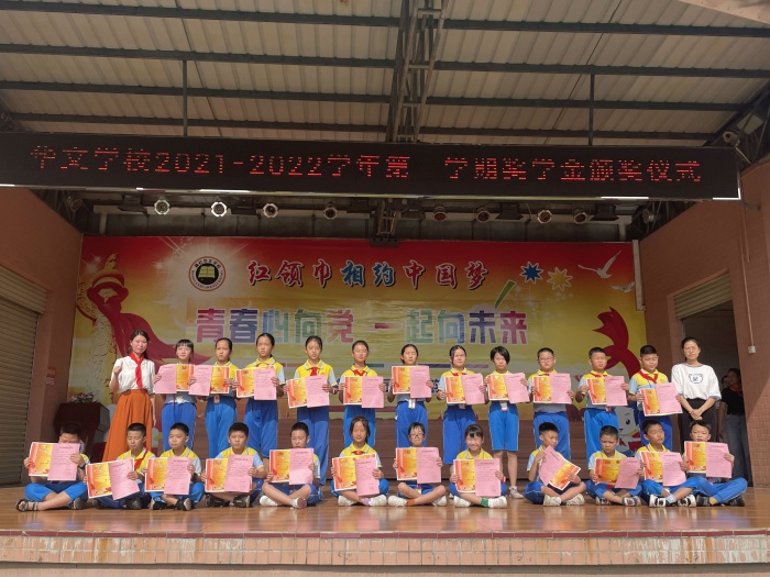 隨后,雷文婷老師作為優秀教師和新教師代表進行發言。她表示在以后的教育教學中,她將以更高的標準要求自己,在自己的工作崗位上踐行初心使命,培育祖國的花朵,呵護他們成長為建設祖國的棟梁。學生代表顏麗容借詩句“寶劍鋒從磨礪出,梅花香自苦寒來”號召同學們在青春的賽道上奮力奔跑,頑強拼搏、努力進取,爭取跑出當代少年最佳風采,用行動書寫自己的人生篇章。最后,學校對在2022年春季學期中表現優異的學生進行表彰,教務處周定青副主任宣讀了獎學金獎名單,并依次頒發了學習標兵獎、中山市紅領巾“三星章”獎章、橫欄鎮優秀少先隊員。