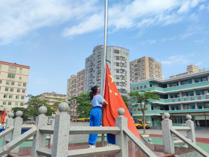 在雄壯嘹亮的國歌聲中,五星紅旗冉冉升起,典禮拉開了序幕。