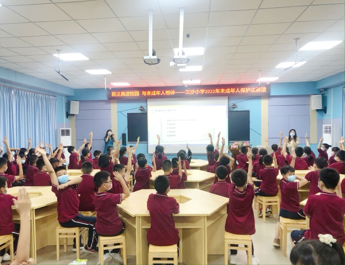 為了扎實做好民法典在學生群體的宣傳普及工作,樹立學生的法律意識,增強學生的自我保護能力,做到學法、懂法、守法,學會用法律知識保護自己。2022年6月8日下午,在橫欄鎮三沙小學一樓錄播室開展未成年人保護法解讀宣傳教育講座。本次活動由橫欄鎮司法所、橫欄鎮關工委主辦,橫欄鎮三沙小學承辦。三沙小學邀請了廣東廣中律師事務所廖珊律師到校進行宣講。