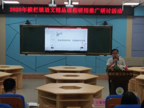 為了進一步推進小學語文學科精品課程建設,發揮特色精品課程的輻射示范作用,促進橫欄鎮各所學校語文教學交流,全面提升語文教學質量,橫欄鎮教育事務指導中心于2020年6月17日下午在三沙小學錄播室開展了“橫欄鎮語文精品課程研用推廣”研討活動,參加本次研討活動的有教育事務指導中心王春明專干、馮艷芳名師工作室全體成員、橫欄鎮各小學語文科組長、教齡3年(含3年)以下的語文教師、沙溪鎮龍瑞小學的語文老師、三沙小學全體語文老師。