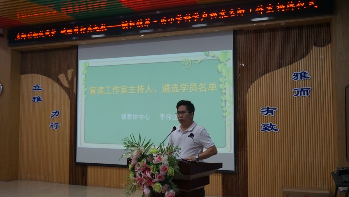 為激發(fā)科學(xué)教師隊(duì)伍的內(nèi)在活力,促進(jìn)科學(xué)教師專(zhuān)業(yè)發(fā)展,5月18日上午,橫欄鎮(zhèn)第三屆小學(xué)科學(xué)盧福棠名師工作室揭牌儀式在四沙小學(xué)成功舉行。橫欄鎮(zhèn)教育和體育事務(wù)中心教研專(zhuān)干王春明、政工員李偉業(yè)、廣東省科學(xué)特級(jí)教師李余仙、該校主要行政領(lǐng)導(dǎo)、橫欄鎮(zhèn)各學(xué)校科學(xué)教師代表及其工作室成員參加此次活動(dòng)。
