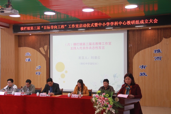 橫欄鎮第三屆名教師工作室主持人代表橫欄中學副校長劉凌云也作了表態性發言。劉凌云表示,作為工作室的主持人,深感責任之重大、任務之艱巨、擔子之沉重,清楚知道工作室是陣地,是機遇,是挑戰,更是奉獻。劉凌云代表工作室全體成員鄭重承諾:首先要有不辱使命的意識,其次要有精誠合作、銳意進取、敢闖敢拼的精神,用勤勞的雙手、辛勤的汗水去耕耘和澆灌工作室這塊樂土,使之成為教學研討的“集散地”、青年教師成長的“助推器”、名師培養的“孵化器”。