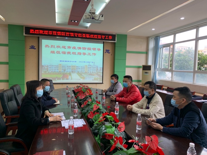 2月16日上午,市委疫情防控督導到四沙小學檢查督導疫情防控工作情況。四沙小學校長歐慧芳作了匯報并陪同檢查。