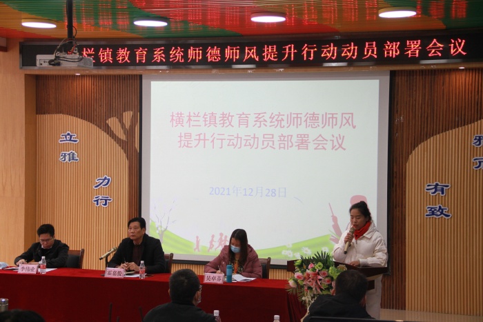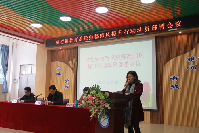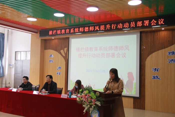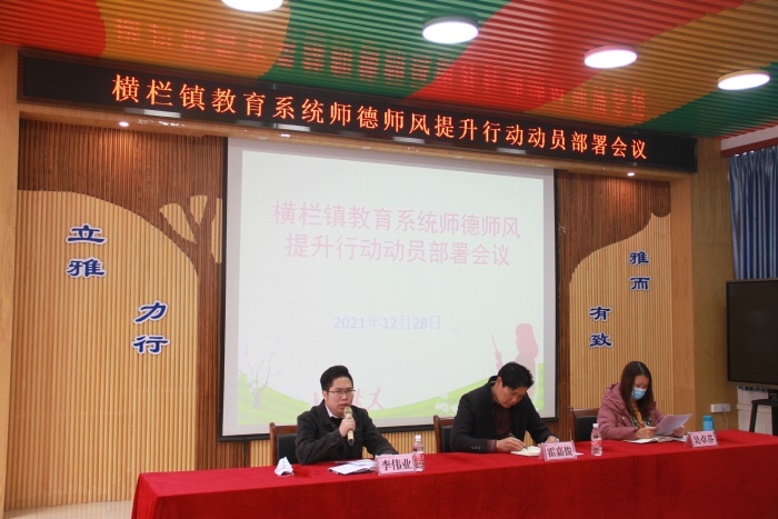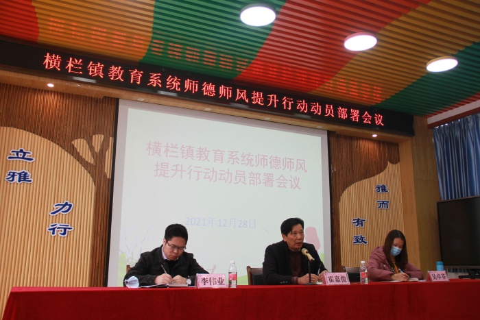 為貫徹落實《教育部等七部門印發<關于加強和改進新時代 師德師風建設的意見>的通知》(教師[2019]10號)、《中山市教育和體育局關于印發<中山市師德師風建設三年行動計劃(2021-2023)>的通知》(中教體通[2021]168號)等的文件精神,進一步規范橫欄鎮中小學(幼兒園)教師職業行為,提高教師思想政治素質和職業道德水平,促進學生健康全面發展,2021年12月28日上午,橫欄鎮教育系統組織中小學校長和幼兒園園長在四沙小學召開了師德師風提升行動動員部署會議。橫欄鎮教育系統黨委書記、橫欄鎮教育和體育事務中心主任霍嘉俊主持會議并對師德師風建設提出了要求。橫欄鎮教育和體育事務中心政工專干李偉業解讀了《橫欄鎮教育系統師德師風提升行動方案》。中小學校校長和幼兒園園長代表作了表態發言。橫欄鎮教育和體育事務中心黨支部書記、橫欄鎮教育和體育事務中心副主任吳卓芬出席了會議。