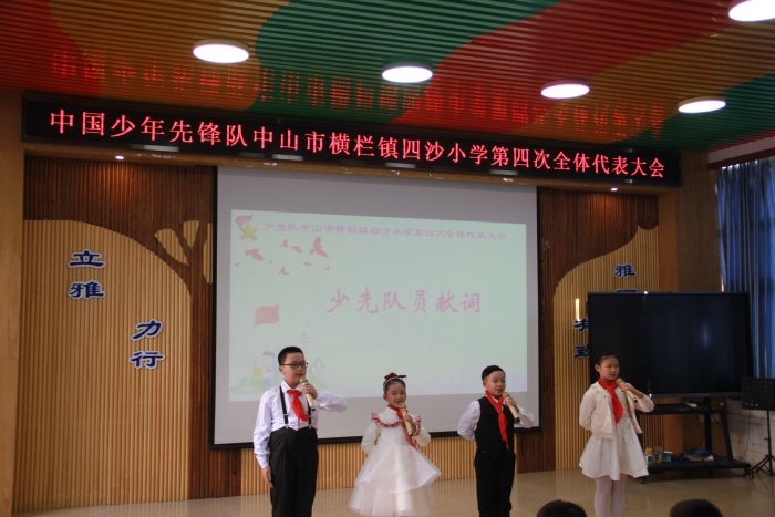 2021年12月1日下午,少先隊中山市橫欄鎮四沙小學第四次代表大會順利召開。250名少先隊員代表和37名成人代表出席。大會號召全體少先隊員學習全國少工委、團中央、教育部聯合印發的《少先隊改革方案》文件精神,學習全國少工委七屆四次全會精神,帶領隊員們好好學習,從小學先鋒,爭做新時代先鋒少年。
