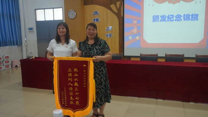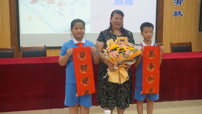 在熱烈的掌聲中,四沙小學(xué)校長(zhǎng)歐慧芳為梁月金頒發(fā)了上書“熱血從教三十七載 立德樹人譜寫春秋”的紀(jì)念錦旗,三3班學(xué)生代表也向梁月金老師獻(xiàn)上了燦爛的鮮花,隨后梁月金老師作了退休感言分享。