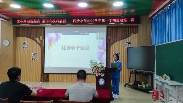校長歐慧芳作了題為《志存高遠新起點 強國有我啟航程》的新學期致辭。她引用時事熱點來勸勉同學們,希望同學們志存高遠,除了學習好文化知識以外,也要關注社會時事,博學廣聞,正心修身,努力做最好的自己,做讓母校為之驕傲的文雅學子、做“請黨放心,強國有我”的中國少年。