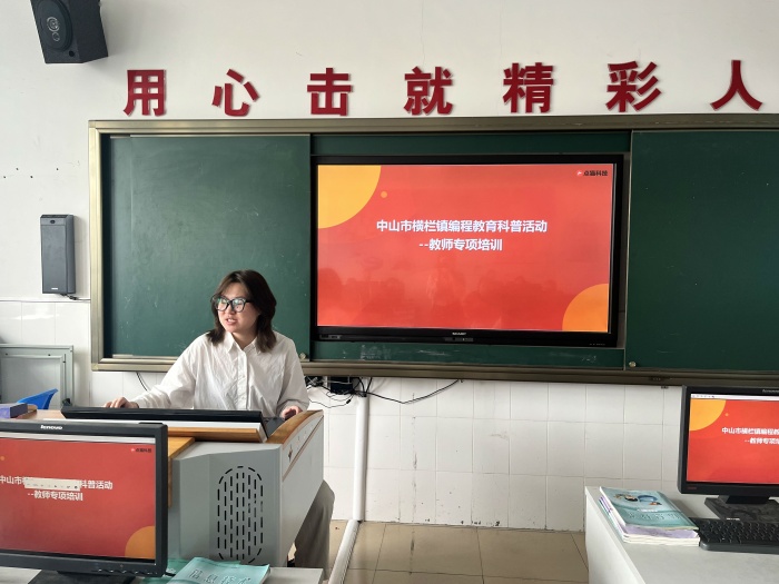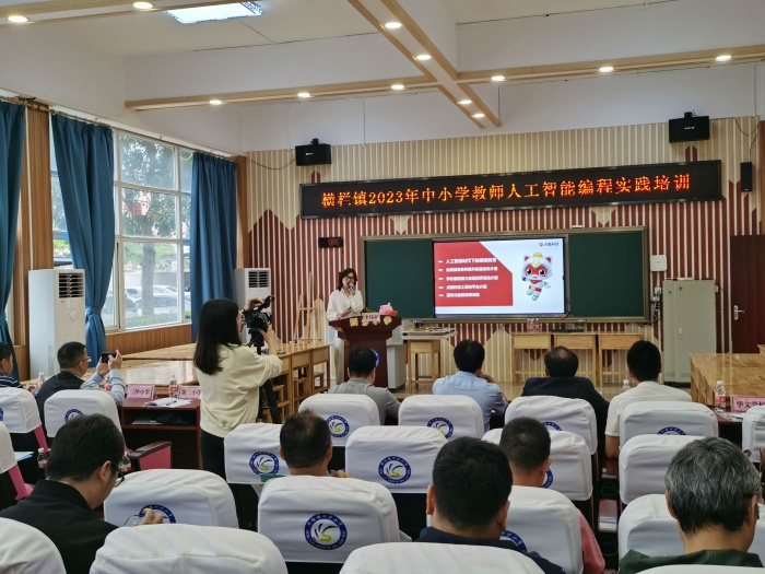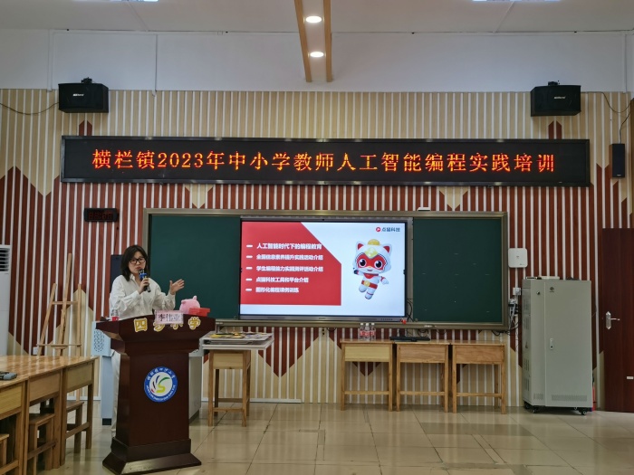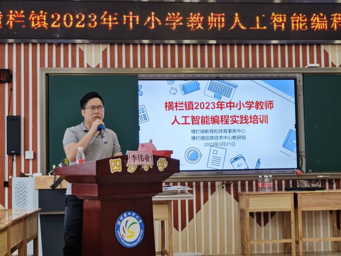 為進一步提高教師重視人工智能教育意識,提升編程教育教學能力,2023年3月21日,橫欄鎮在四沙小學舉行了2023年中小學教師人工智能編程實踐培訓活動。各校分管人工智能教學的行政和信息科技教師參加了培訓。培訓由王倩雯老師主講。