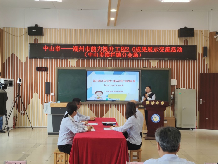 為加強中山市和潮州市教育教學交流,展示能力工程2.0成果,2023年3月9日,由中山市教師發展中心、中山市教育教學研究室、中山市能力提升工程2.0辦公室和潮州市教育研究與教師發展中心聯合主辦的“中山市—潮州市能力工程2.0成果展示交流活動橫欄鎮(中學英語專場)”在四沙小學成功舉行?;顒硬捎镁€上線下、同課異構的方式在中山和潮州兩地同步開展。中山市教師發展中心劉歡桐副主任、中山市能力提升工程2.0辦公室吳寒冬主任、中山市教研室信息技術教研員兼能力提升工程2.0辦公室副主任陳明宏老師等專家蒞臨橫欄鎮專場指導。