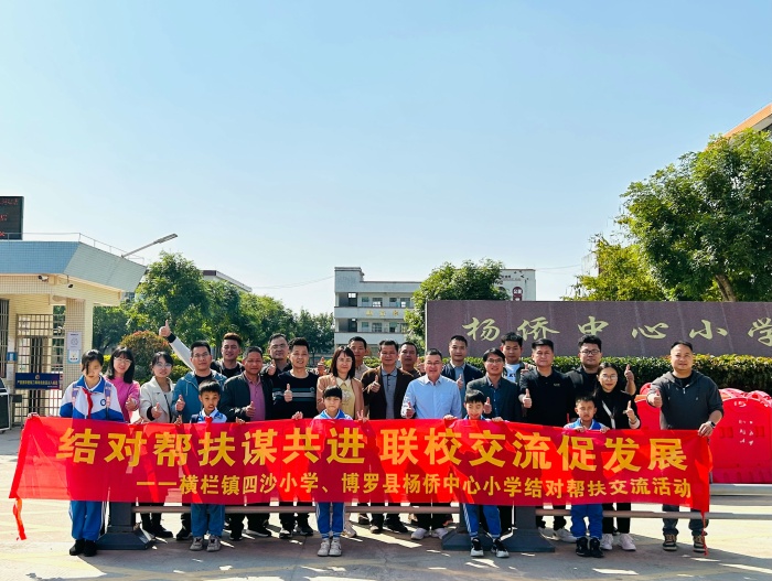 2023年2月23日,在這個明媚的春日里,為深入貫徹落實《廣東省教育廳關于做好全口徑全方位融入式幫扶粵東粵西粵北地區基礎教育高質量發展工作的通知》的文件精神,進一步推進中山市橫欄鎮四沙小學與惠州市博羅縣楊僑中心小學對口幫扶活動,深化兩校之間的合作交流,共同提高學校的管理水平和提升教學質量,橫欄鎮四沙小學副校長盧福棠帶領四沙小學行政代表、名師、骨干老師代表、家委會領導代表一行20人到博羅縣楊僑中心小學開展幫扶交流活動。