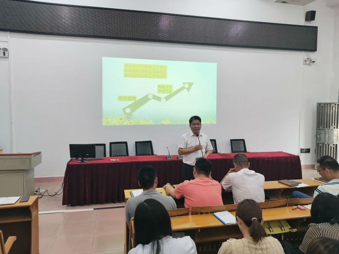 會議最后,橫欄中學黨總支書記、校長黎碧東作了總結講話。他充分肯定了前面5位老師的分享,認為他們目光敏銳、見解獨特、思考深入,充分抓住了這次外出學習的機會,取得了良好的效果。黎校長指出,學校會充分把握好同市一中開展集團化辦學的有利時機,珍惜鎮黨委政府和市一中提供的良好平臺,不斷創造更多的機會讓更多的老師有外出學習和提升自己的機會,并以此為抓手,不斷推動學校教育教學水平的提高。他也希望全體橫中人要珍惜機會、陽光生活、智慧工作、學會觀察、主動轉變,在學習中不斷提升自己。