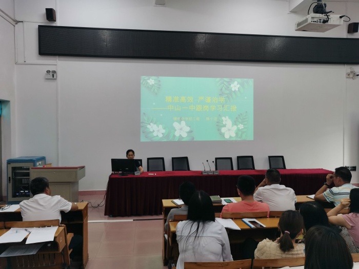 為了充分發揮集團化辦學的優勢,積極學習集團龍頭學校中山市第一中學的先進教育教學和管理理念,擴大跟崗教師外出學習的輻射效應,實現資源共享,積極提升學校全體教師教育教學水平,5月9日下午,橫欄中學全體教師集中階梯室,學校德育處主任羅錫坤、教導處主任王新立、化學科組長林愛麗、道法科組長陳小潔、歷史科組長陳佳穎依次分享了他們去市一中跟崗的學習心得。