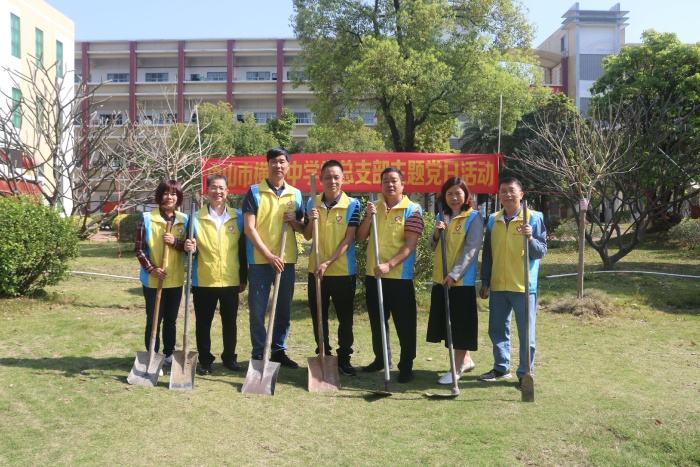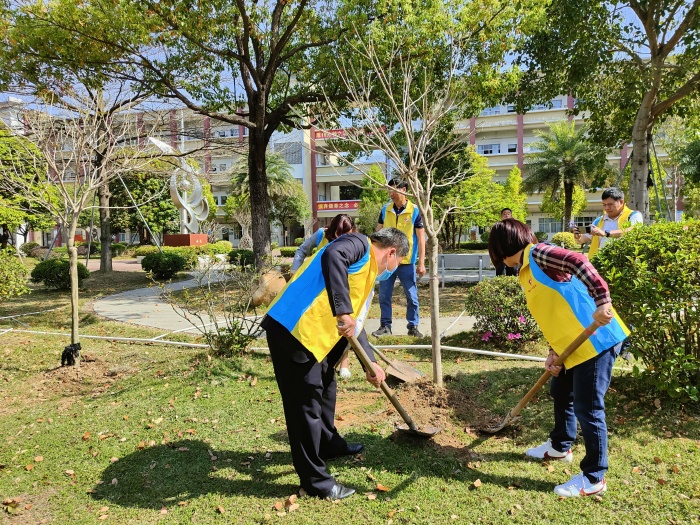 春回大地萬物蘇,植樹添綠正當時。為大力提升校園文化與優美校園環境,倡導全校師生植綠護綠愛綠理念,在我國第44個植樹節來臨之際,橫欄中學黨總支積極發揮黨建引領作用,組織開展“黨建紅 校園綠”2022年植樹節主題黨日活動。橫欄中學八五屆校友會副會長蕭慶林、八五屆校友梁愛娣、廖偉興以及八七屆校友陳偉文和全體黨員一起參加了此次活動。