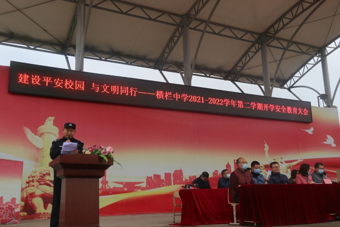 2月14日上午,橫欄中學(xué)2021-2022學(xué)年春季開(kāi)學(xué)典禮暨頒獎(jiǎng)儀式在學(xué)校運(yùn)動(dòng)場(chǎng)舉行。橫欄中學(xué)黨總支書(shū)記、校長(zhǎng)黎碧?hào)|作開(kāi)學(xué)致辭,學(xué)校法制副校長(zhǎng)、鎮(zhèn)西涌派出所林紹豐警官作了法制安全講座。在典禮上還為各年級(jí)上學(xué)期獲得 “三好學(xué)生標(biāo)兵”“十大君子”“十大優(yōu)秀學(xué)生會(huì)干部”的學(xué)生進(jìn)行了頒獎(jiǎng)。
