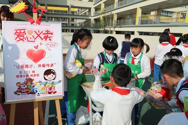 愛心就像冬日里的陽光,三四年級的同學們開展了愛心義賣活動,義賣攤位上擺滿了各式精美小巧的手工藝品、文具、食物、生活用品等,同學們向路過的“顧客們”推銷自己的愛心物品,可謂“八仙過海各顯神通”。行走在各式“商鋪”間,耳畔的叫賣聲,眼前的景象熱鬧非凡,在一買一賣之間傳遞愛心,讓大家感受校園的溫暖。