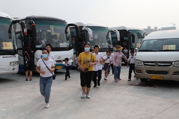 為進一步加強學校校車接送的安全管理,結(jié)合學校防控防疫措施,以及對學生安全知識的宣傳和教育,提高學生乘車安全意識和防范能力,讓每位師生遇到緊急情況時能從容對待, 2021年9月30日下午,中山華附小學校區(qū)生活部開展了校車安全疏散演練活動。王學坤副校長、柴國遠副主任、生活部王靜主管和所有校車老師、全體乘車學生參加了此次活動。