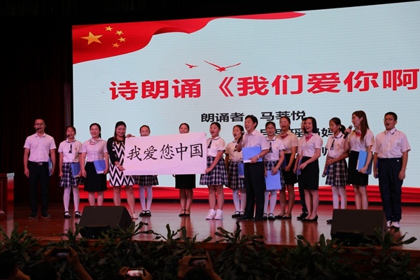 本次比賽由朱漢釗同學(xué)主持,7名年級家委和老師共同擔(dān)任評委。共有7名選手參賽,選手們以《志存高遠(yuǎn),少年強國》《中國心,永不眠》國歌情懷等為主題。比賽中,每位選手激情昂揚,自信滿滿,他們用自己真摯的情感、激昂的文字,贊美了中國人民在抗擊新冠疫情中同心協(xié)力、共渡難關(guān)的偉大壯舉,歌頌了偉大祖國的日新月異和繁榮富強,暢談了在祖國母親的哺育下茁壯成長的感受,抒發(fā)了少年兒童對偉大祖國的無限熱愛,表達(dá)了自己為祖國美好的明天而努力奮斗的愿望。除此之外,7位參賽選手的家人也來到了現(xiàn)場為自己的孩子加油鼓氣。他們或揮毫潑墨,或深情朗誦,或用歌聲去傳遞那份濃濃的愛。隨后,六年級師生同臺朗誦《我們愛你啊,祖國》,表達(dá)純真的愛國情懷。而大合唱國歌和《我和我的祖國》更是把現(xiàn)場氣氛推向了高潮。師生們、家委們揮動著自己手中的小紅旗,用歌聲去贊美祖國。整個會場洋溢著濃濃的愛國情。