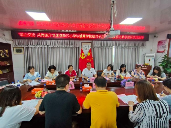 為了進一步提高期末復習的有效性,提升教師的業務能力。2022年6月17日下午,新沙小學的馮祐培副校長和冼鳳蘭主任帶領新沙小學教師團隊一行9人蒞臨雛鷹學校進行送課并進行教研交流活動。