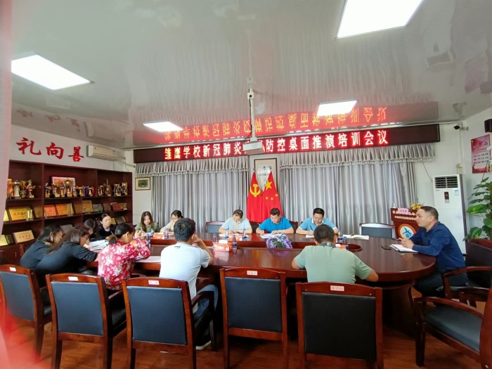 疫情防控桌面推演開始前,雛鷹學校疫情防控領導小組組長張華校長引導學校各部門負責人進行協商討論。明確疫情防控小組各部門的工作職能,完善學校疫情防控相關流程,細化相關工作要求。