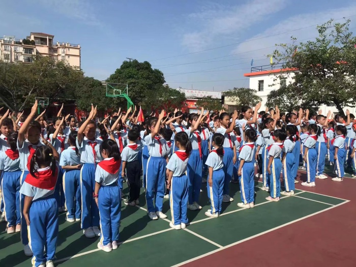 少年兒童是祖國的未來,肩負著中華民族的興旺發展。在中國少年先鋒隊建隊73周年之際,10月26日,黃圃雛鷹學校少工委舉行了新隊員入隊儀式。