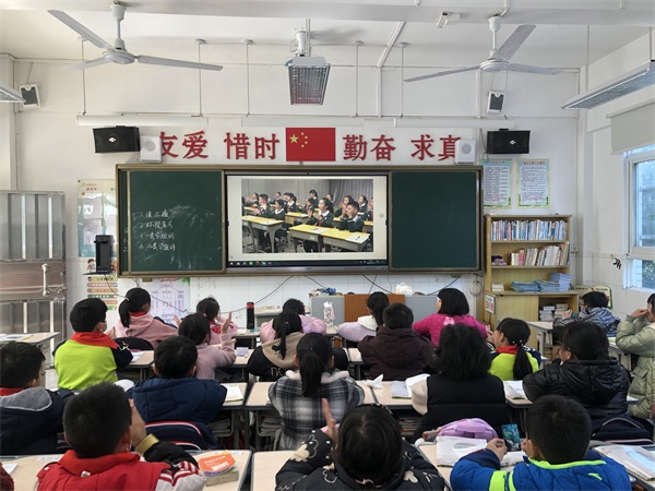 視頻中,雷老師首先帶領同學們進行“歡樂變奏曲”的游戲,升輝小學教室里的同學也不由自主地跟隨著節拍進行“演奏”,班主任們隨即導入了話題:變化。接著觀看了通訊變化的視頻,讓同學們對“變”的接受與理解,生活中變化無處不在。接著引導同學們講事例后用一個詞語形容自己的心情,引起廣大同學的強烈共鳴。