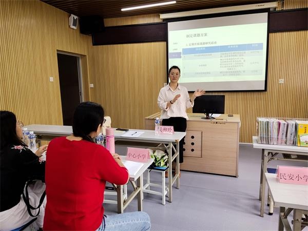 最后,朱老師作為南頭鎮升輝小學代表,分享了他們學校開展持續默讀的操作方法和相關經驗,并在現場展示了南頭鎮升輝小學現有的繪本資源庫。
