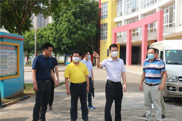 2020年8月28日上午,南頭鎮黨委副書記、鎮長藍海斌,黨委委員、副鎮長張均標,鎮紀委書記余漾,以及鎮文體教育局和衛計局負責人等一行到升輝小學督導開學工作情況。