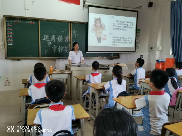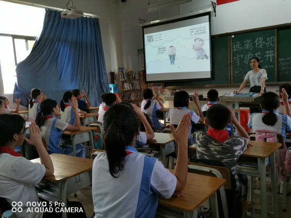 2020年6月4日下午,第三節道法課,是大岑小學例行的德育課程陣地,“遠離侵害 守護花開”預防性侵害未成年人主題班會在各班級進行。