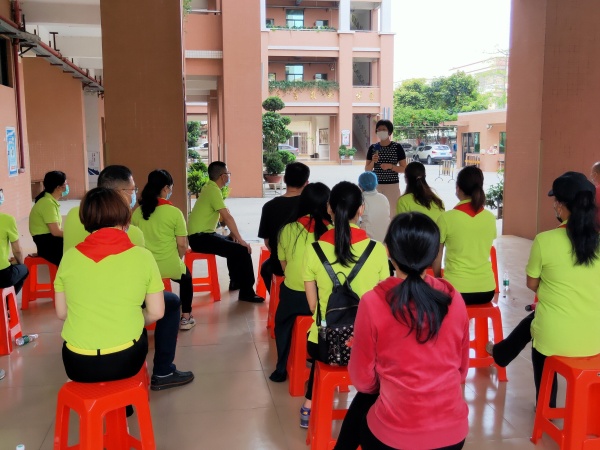 在演練開始之前,衛生副校長陳逸龐醫生為全體教師做了防疫防控專題培訓。隨后,演練在大岑小學梁慶堂校長的宣布下拉開了帷幕。本次演練共有兩個場景,分別是校門防疫防控監測處理和課室防疫防控應急處置。