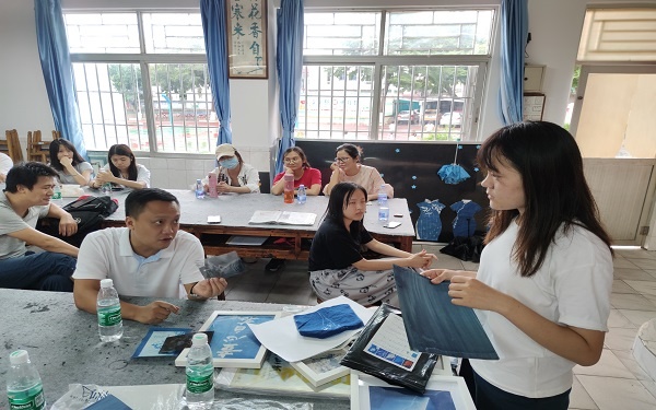 為進一步豐富和發展學校藝術教育內涵,不斷創新藝術教育工作特色。2020年9月18號下午,在黃圃鎮橫檔小學開展了本學期第一場美術教研活動。借助2019年黃圃鎮美育工作坊成果,橫檔小學張立娟老師向大家介紹首先向各位老師介紹制作的過程,包括怎樣擺放圖畫、怎樣上色、上色和曬染料的注意事項等等。在學習了制作過程后,老師們挑選自己喜愛的照片和干花等,并動手配置溶液、剪裁水彩紙、涂刷藥水,最后將選擇好的物品與涂好藥水的水彩紙夾在一起,放在陽光下進行曝光,而后用清水進行沖洗。老師們暢所欲言,不僅分享了藍曬作品的收獲與感悟,而且提出了中肯的建議以及教學探索。