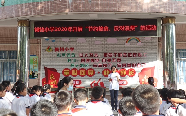 為貫徹落實習近平總書記關于制止餐飲浪費行為的重要指示精神,培養(yǎng)學生良好的健康飲食習慣,教育學生厲行節(jié)約、反對浪費,在校園中營造浪費可恥、節(jié)約光榮的氛圍,橫檔小學舉辦了2020年“節(jié)約糧食,反對浪費”活動。