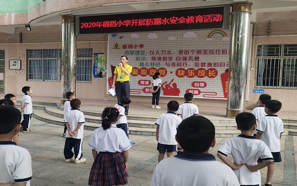 6月1日上午8點,升國旗儀式之后,橫檔小學舉行防溺水教育活動。為防止發生溺水事故,活動主持人招權民主任要求同學們銘記“六不”:1、不私自下水游泳;2、不擅自與他人結伴游泳;3、不在無家長或教師帶領的情況下游泳;4、不到無安全設施、無救援人員的水域游泳;5、不到不熟悉的水域游泳;6、不熟悉水性的學生不擅自下水施救。遇到同伴溺水時避免拉手盲目施救,要智慧救援,立即尋求成人幫助。那溺水后如何自救?不要慌張,發現周圍有人時立即呼救。放松全身,讓身體漂浮在水面上,將頭部浮出水面,用腳踢水,防止體力喪失,等待救援。身體下沉時,可將手掌向下壓。如果在水中突然抽筋,又無法靠岸時,立即求救。若周圍無人,可深吸一口氣潛入水中,伸直抽筋的那條腿,用手將腳趾向上扳,以緩解抽筋。