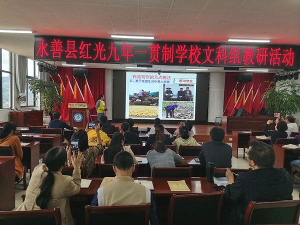 9月16日下午,黃圃鎮馬新初級中學黃彩媚老師在云南省昭通市永善縣紅光學校為該校50多名文科老師舉行了以“立足于傳統,著眼于創新”為主題的交流講座。本次交流講座的內容主是把馬新初級中學科組教研經驗以及備課組開展活動與紅光學校的文科老師們一起分享。