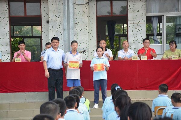 簡單而隆重的頒獎儀式上,獲獎的同學難以掩飾心中的喜悅,燦爛的笑容洋溢在臉上。臺下的同學給獲獎的同學送上熱烈的掌聲。