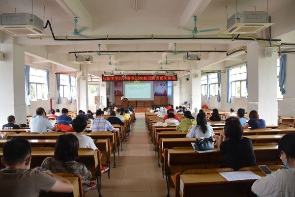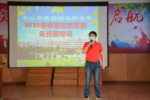 4月21日上午,黃圃鎮馬新初級中學全體教職工集中于學校階梯室,開展2020春季返校新冠肺炎預防培訓。