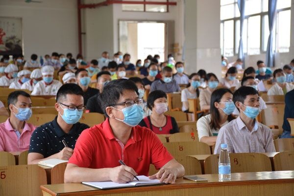 楊靈院長先給大家介紹了什么是傳染病,傳染病的傳播途徑有哪些,以此引入正題:什么是新型冠狀病毒肺炎以及新型冠狀病毒肺炎的傳播途徑有哪些。引入正題后,楊院長給大家深入講解了感染新型冠狀病毒后會出現的具體情況,并一再強調萬一不幸感染了新型冠狀病毒必須及早就醫,切莫過度恐慌,延誤治療良機,給身邊的人帶來本來可以避免的傷害。他還明確地告訴大家:目前治療新型工作病毒肺炎沒有特效藥,大家必須正確對待,維護好自身防疫體系,多喝水,加快毒素排泄,正確使用醫療設備背新型冠狀病毒。那么,怎樣才不會被新型冠狀病毒感染呢?從隔離病毒、減少感染機會兩個方面給大家進行了分析講解。楊院長最后強調學校復學后必須從教師自身、飯堂職責以及后勤保潔三個方面做好防控新型冠狀病毒的防控。