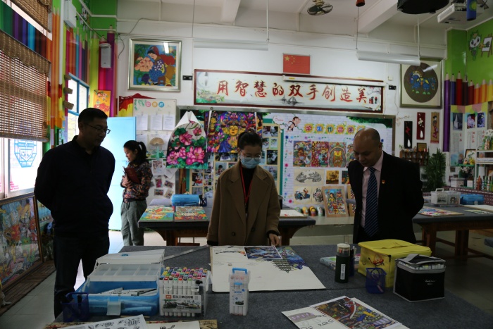 南頭鎮教體中心梁柳珍在梁惠鵬校長、王劍平副校長、黃炎娟副主任的帶領下,巡視校園,對學校環境衛生、校園安全、校園秩序以及校園文化陣地的建設等進行實地查看,在巡視中,梁惠鵬校長詳細匯報學校的發展規劃以及“五項管理”“雙減”工作的措施以及成效。