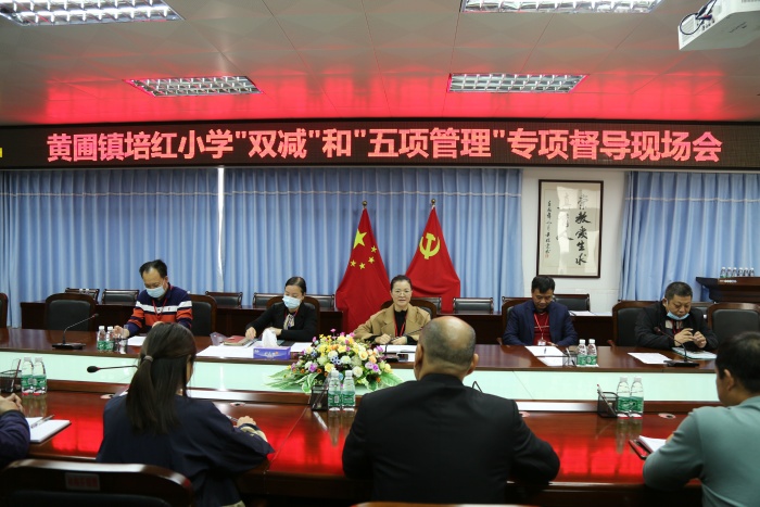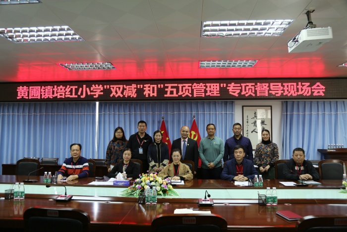 為進一步推動“五項管理”和“雙減”等相關政策規定的落實落地,引導學校、家庭、社會樹立科學育人理念,促進學生健康成長、全面發展。12月24日上午,中山市教育督導第一片區(南頭與黃圃)聯合督導組,蒞臨培紅小學開展2021年義務教育學校“雙減”和“五項管理”專項督導工作。參加本次督導工作的中山市督學南頭鎮教體中心教研員梁柳珍、張月音、升輝小學呂鑒添校長、黃圃鎮教體中心何鳳云書記、袁港喜副主任、姚勁強老師。培紅小學梁惠鵬校長以及學校部分行政陪同參加。