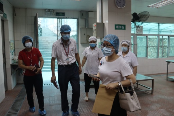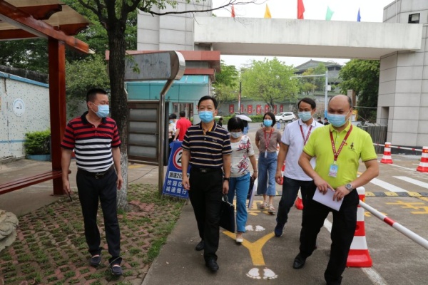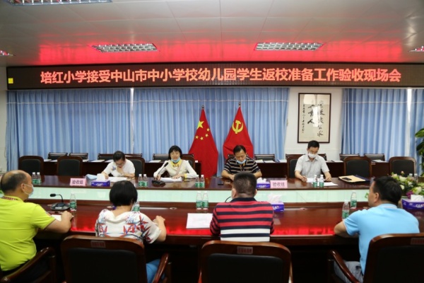 中山市第一、二批學生順利返校復學后,各小學也即將迎來學生的返校,為確保返校復學安全順暢,切實保障廣大師生的身心健康和生命安全,培紅小學繼5月8日接受了鎮的復學驗收檢查后,5月11日上午,又迎來了中山市中小學校(幼兒園)2020年春季返校復學準備工作督導驗收檢查組的驗收檢查,在市教體局唐杰偉副局長帶領下,聯同教體局、衛健、市場監管等部門聯合組成的檢查組一行到培紅小學進行驗收檢查,黃圃鎮文體教育局蔣金開局長、教育事務指導中心何鳳云主任、袁港喜副主任、陳茵沛衛生專干陪同驗收,學校梁惠鵬校長攜全體行政全程參與并逐一匯報學校的各項準備工作。